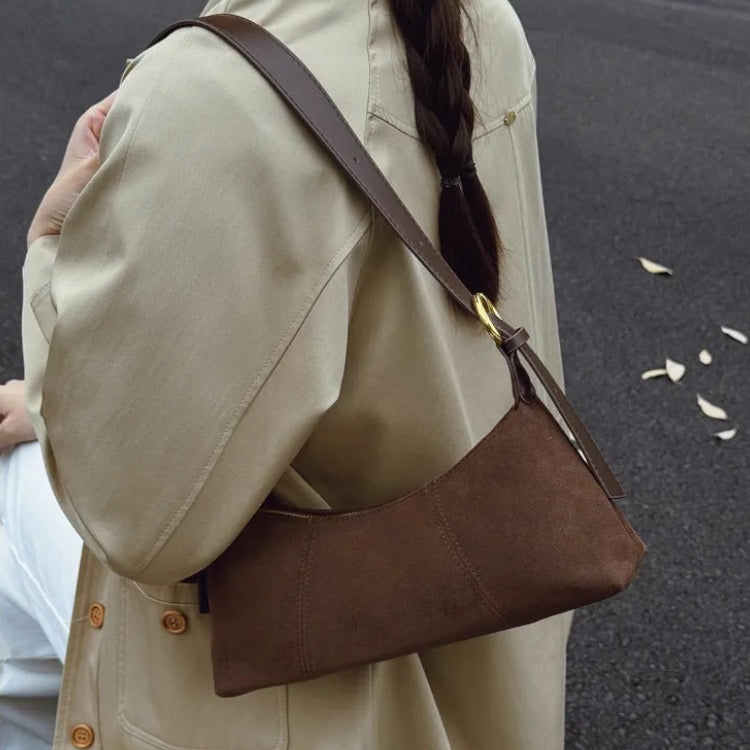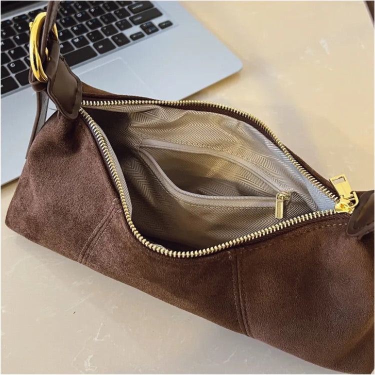 Accented with gold-tone hardware, this suede bag comes with two straps to suit every mood!